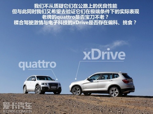 我們不從質(zhì)疑它們在公路性能上的優(yōu)良表現(xiàn),但與此同時(shí)我們又很希望去驗(yàn)證它們在極端條件下的實(shí)際表現(xiàn),于是,在本期的四驅(qū)測試中,我們挑選了目前市場上最具代表性的兩款車,在荒蕪的沙地上來一次爬坡測試。到底看看在公路上“生龍活虎”的渦輪增壓發(fā)動(dòng)機(jī)在越野路況下的實(shí)際表現(xiàn)到底如何?
