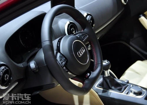 內(nèi)飾方面:奧迪全新一代A3的做工更加精致,造型設(shè)計(jì)也得到大幅度改進(jìn),其中內(nèi)飾帶按鍵的方向盤(pán)由真皮材質(zhì)包裹,此外空調(diào)排風(fēng)口等多處細(xì)節(jié)都有類(lèi)似鍍鉻的邊框作為點(diǎn)綴,檔次感得到升級(jí)。