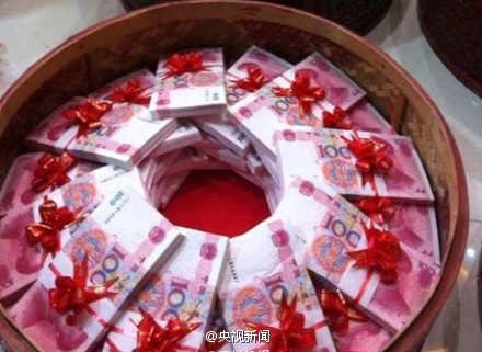 河北部分農(nóng)村,結(jié)婚彩禮太高讓越來越多男青年難以娶妻,不少地方彩禮要“三斤一響”,指三斤重的百元鈔票和一輛汽車,還有的要“萬紫千紅一片綠”,即萬張五元、千張百元及大片五十元鈔票做聘禮,這些彩禮錢數(shù)粗估約12萬—20萬…你那里結(jié)婚彩禮收得兇嗎?
