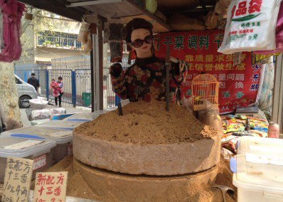 今天上午,在前進(jìn)路伊河路口,一輛賣調(diào)味品的小貨車上,一身穿紅旗袍帶墨鏡的“妙齡女郎”動(dòng)作嫻熟地推動(dòng)石磨加工十三香。老板唐師傅笑著說自從裝上美女機(jī)器人幫忙推磨后,生意好了不少。