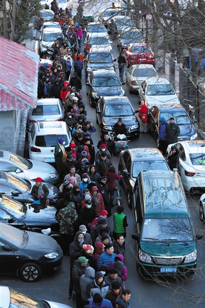 昨日早8時(shí)許,數(shù)百人等候在朝陽(yáng)區(qū)水碓子郵局門口,平日寂靜的街道“人氣”旺盛。一位推著自行車經(jīng)過的女士好奇地詢問,“今天怎么了?這么多人!”