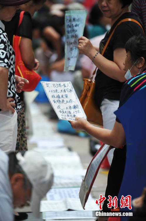 家長們將征婚信息貼在高出期望得到跟多關(guān)注。中新社發(fā) 孫昊聲 攝