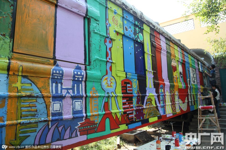2015年10月10日,鄭州四禾美術(shù)中學(xué)充分發(fā)揮美術(shù)生的優(yōu)勢(shì),對(duì)火車車身1進(jìn)行涂鴉改造,使火車宿舍看起來(lái)更加漂亮。