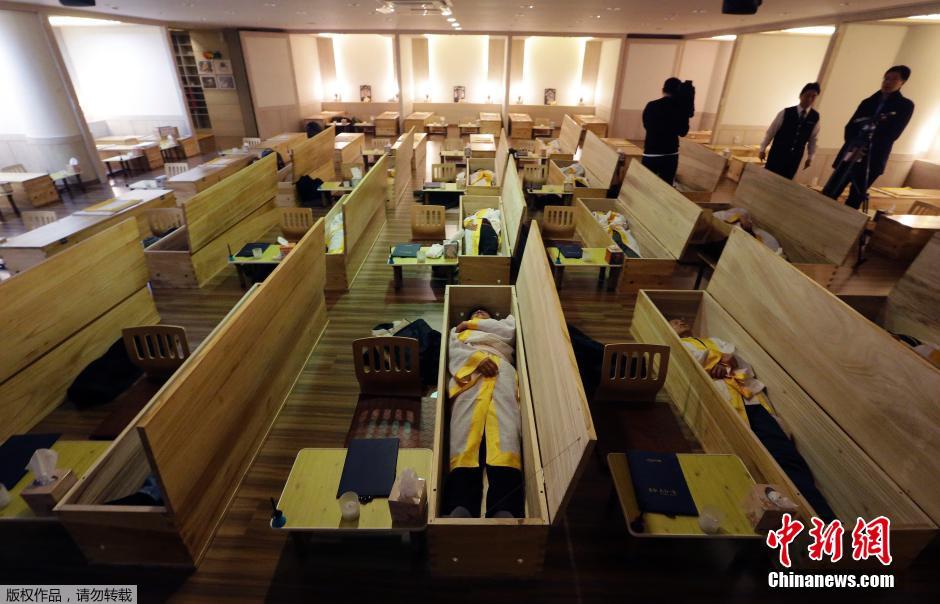 韓國(guó)社會(huì)近來(lái)興起一股“模擬葬禮”風(fēng)潮,以這種另類的方式幫助人們減壓、調(diào)整人生航向。據(jù)報(bào)道稱,韓國(guó)的自殺率不斷上漲,每天都有多達(dá)40人自殺。專家認(rèn)為韓國(guó)過(guò)于激烈的競(jìng)爭(zhēng)環(huán)境是導(dǎo)致人們抑郁、自殺的罪魁禍?zhǔn)住J谞柕囊患抑委熤行姆Q,他們推出的“死亡體驗(yàn)”療法是消除自殺危機(jī)的良方。
