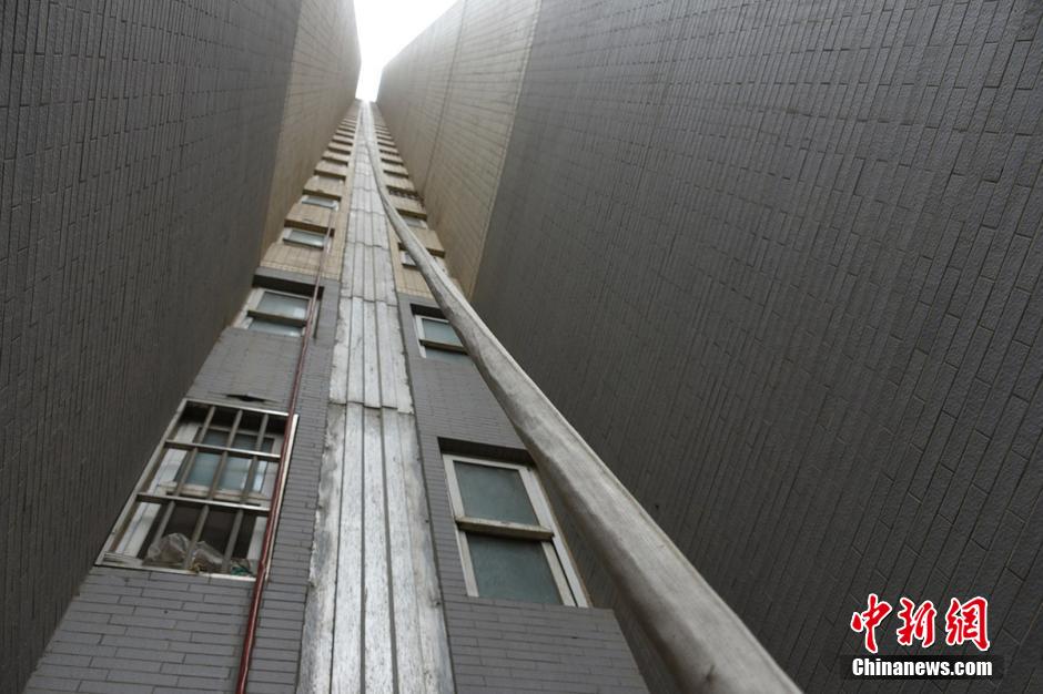 水管是從20樓放下來的,小菜園的主人用它來澆水?!蔽磥砺费卜狸?duì)員司廣紅說。在小菜園旁邊站著一名中年男子,手里拿著鐵锨。男子說,他是燕莊村民,姓張,家住9號(hào)樓20層。 李四信 攝 圖片來源:視覺中國(guó)