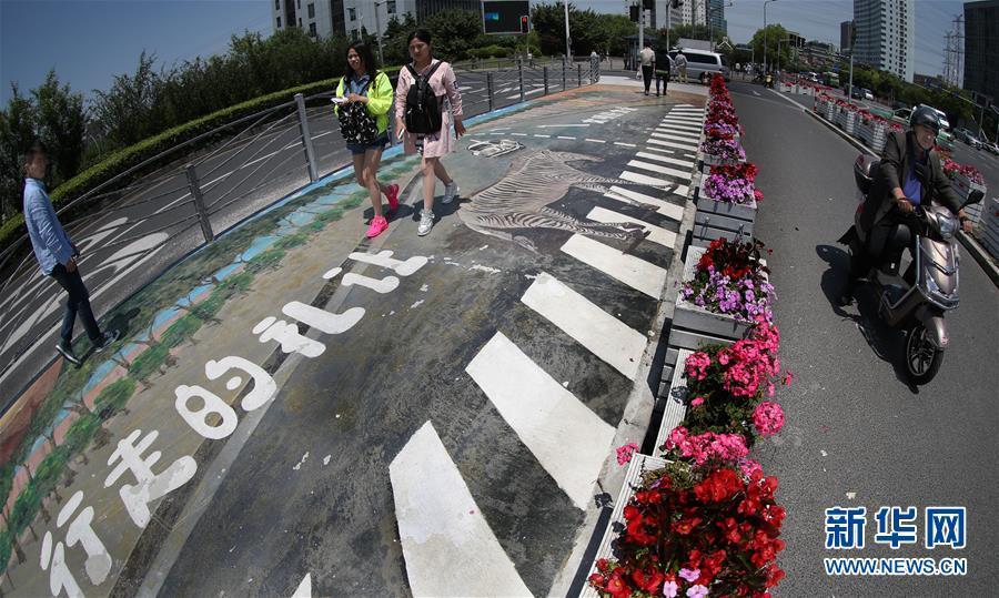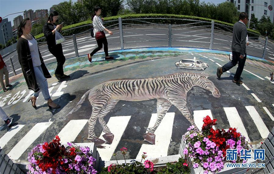 5月16日,行人從上海漕河涇開(kāi)發(fā)區(qū)一處3D斑馬線(xiàn)上走過(guò)。近日,上海漕河涇開(kāi)發(fā)區(qū)的一條人行橫道線(xiàn)變身一幅3D效果圖畫(huà),還“植入”了宣傳行走禮讓的標(biāo)語(yǔ),呼吁文明出行。 新華社記者 凡軍 攝 圖片來(lái)源:新華網(wǎng)
