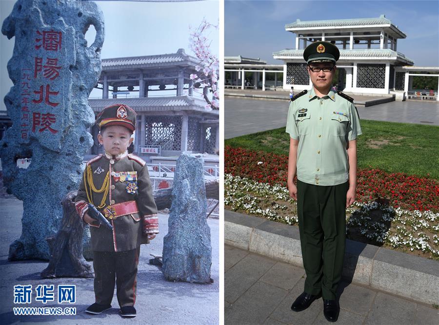 上圖:來自遼寧的雷鳴三歲時(shí)在沈陽(yáng)市北陵公園留影(1993年攝,資料照片);下圖:5月28日,遼寧公安邊防總隊(duì)警官雷鳴在沈陽(yáng)市北陵公園留影(新華社記者 潘昱龍 攝)。 新華社發(fā)