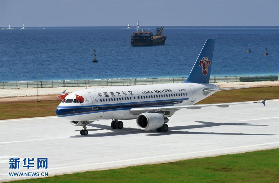 7月13日,南方航空公司的客機(jī)在美濟(jì)礁新建機(jī)場(chǎng)著陸。新華社記者 陳益宸 攝 圖片來(lái)源:新華網(wǎng)