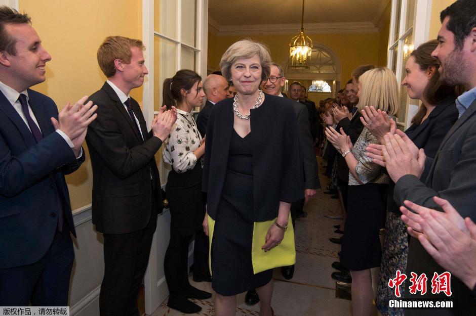 新首相特蕾莎·梅入主唐寧街10號,職員們夾道鼓掌歡迎。