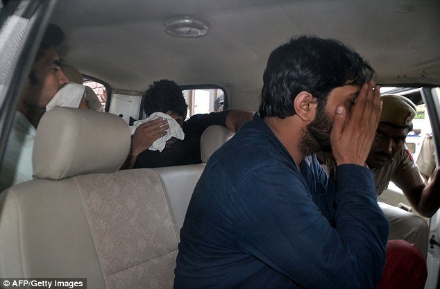 受害女子稱:“我離開學(xué)校,看見了他們,相同的5個人。我非常害怕?!笔芎θ烁嬖V當(dāng)?shù)匾患译娨暸_,“他們強迫我進入車里,試圖扼死我。他們威脅說要殺死我的父親和兄弟?!眻D為3名涉嫌強奸女子的嫌疑人被捕時,用手遮住臉。