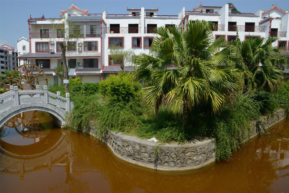 2016年7月26日,村民在廣西來(lái)賓市忻城縣隆達(dá)山水福城荒廢別墅間放牛。近日,記者在廣西來(lái)賓市忻城縣隆達(dá)山水福城別墅群內(nèi)看到,這些別墅建筑共有100多棟,分為四層,別墅主體工程和外墻裝修已經(jīng)完成。但房子里堆滿垃圾,別墅群間的河水已被污染已變混濁,顯然別墅群沒(méi)有任何人看管,任由他人進(jìn)出。