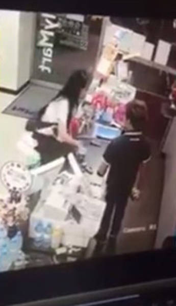 男店員企圖阻止女顧客但不果,之后拿起手機(jī)似乎在通報(bào)事件,然后男店員便躲到一旁。