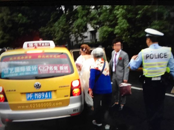 當隨車的新娘新郎得知婚車涉嫌套牌后,隨即表示支持民警工作,打車離去。