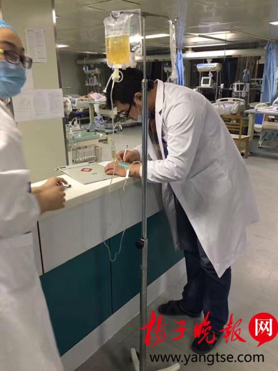 10月29日,一位身穿白大褂帶著口罩的男醫(yī)生,一邊打點滴,一邊為病人下醫(yī)囑的照片,出現(xiàn)在記者的微信朋友圈中。記者獲悉,這位醫(yī)生是江蘇鹽城市濱??h人民醫(yī)院的一名醫(yī)師,當時正在搶救病人,現(xiàn)場非常感人。圖片來源:揚子晚報網(wǎng)