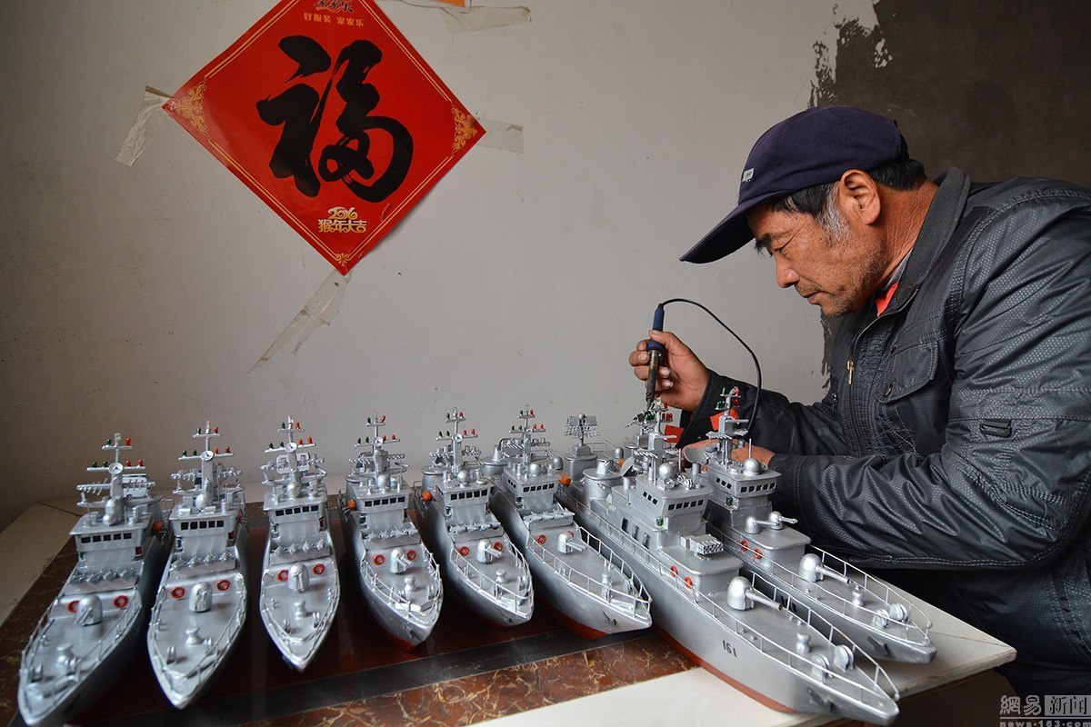 1月9日,今年59歲的郭長(zhǎng)海,是山東省日照市山海天旅游度假區(qū)肖家村一位普通的漁民。從2005年開(kāi)始,他自己純手工制作“軍艦”模型,可以說(shuō)是到了癡迷的程度。十幾年來(lái),他先后花費(fèi)近6萬(wàn)多元人民幣,造出了7艘可實(shí)現(xiàn)模擬槍炮發(fā)射的“軍艦”模型,十幾艘小軍艦?zāi)P?。幾年?lái),因?yàn)樗陌V迷,郭長(zhǎng)海也成為網(wǎng)絡(luò)、報(bào)紙、電視,以及自媒體等關(guān)注報(bào)道的對(duì)象,成為“網(wǎng)紅”。