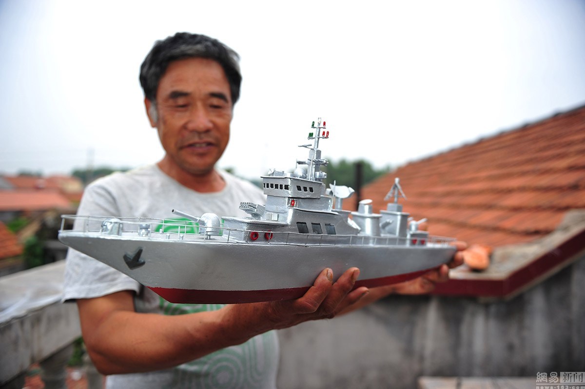 郭長(zhǎng)海,初小文化,當(dāng)過(guò)27年的船長(zhǎng)。2005年,迫于海洋漁業(yè)的枯竭,他將漁船賣(mài)掉。但是仍然割舍不了對(duì)大海的依戀之情。平時(shí),他喜歡從電視上了解國(guó)家大事,最愛(ài)看軍事頻道,耳濡目染,于是對(duì)軍艦產(chǎn)生了濃厚的興趣。農(nóng)閑的時(shí)候,郭長(zhǎng)海便琢磨起了艦艇模型的制作。