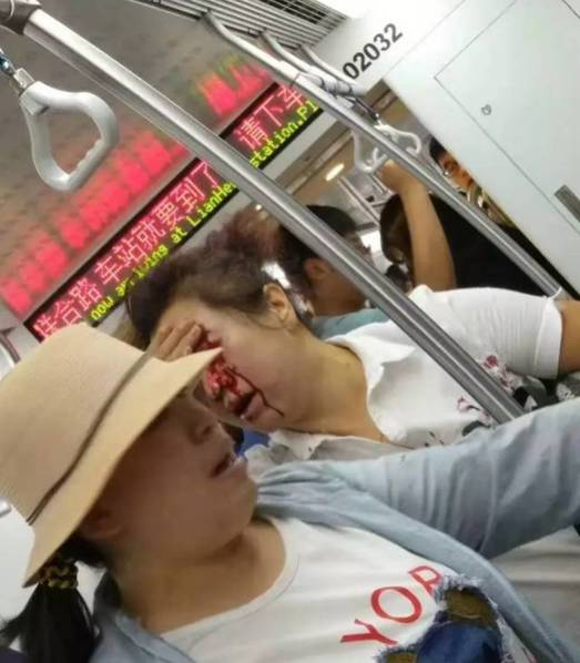 據(jù)圖片顯示,在地鐵車廂內(nèi),一名中年女子滿臉是血,情緒很是激動,網(wǎng)友指稱她就是被孕婦砸傷的女子??梢钥吹剑噹匕迳系温淞瞬簧傺E。11日中午,記者聯(lián)系到了曾在現(xiàn)場勸架的乘客蘭先生。蘭先生說,當(dāng)時地鐵開往入市方向,兩名女子在西安路車站剛上車時,就已經(jīng)吵起來了。期間,兩人還動了手,被周圍乘客給勸開了。其中,一名女子稱自己是孕婦,經(jīng)觀察她腹部有隆起的跡象。