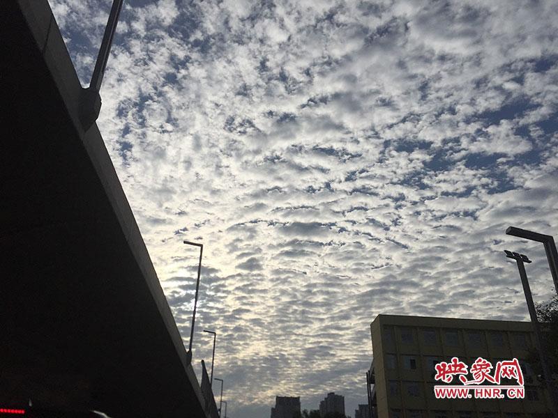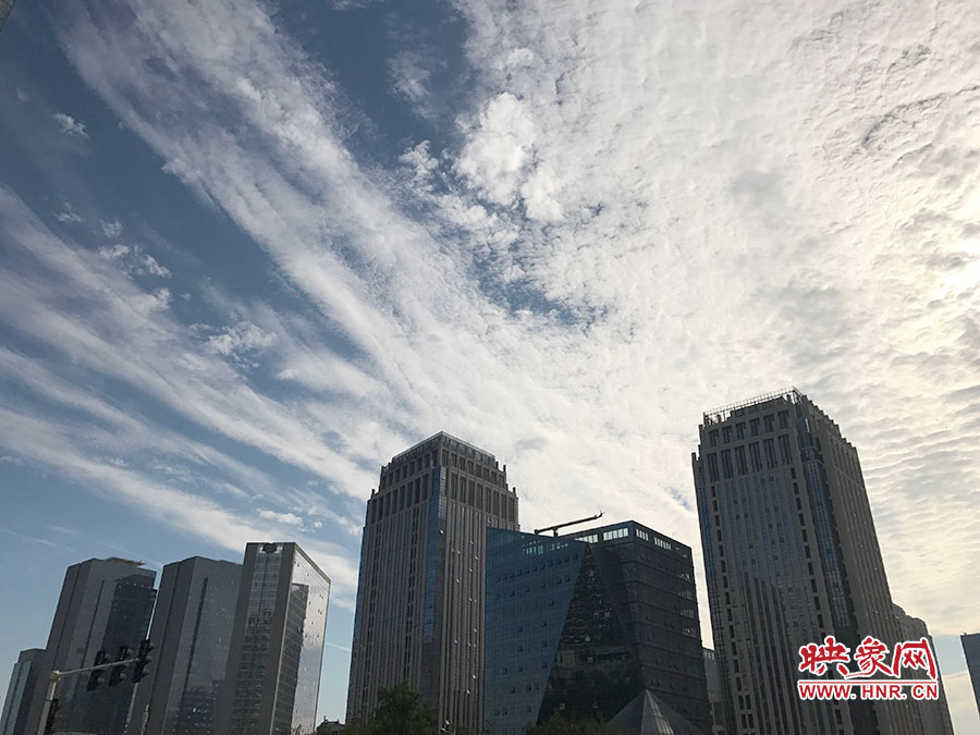 立秋大雨過(guò)后,8月8日清晨時(shí)分,鄭州上空出現(xiàn)美麗的魚(yú)鱗云,讓人沉醉,讓人興奮。抬頭45度,仰望天空,鬧市與清澈只有一顆心的距離……