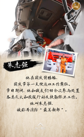他在國慶前結(jié)婚,國慶節(jié)第一天便返回工作崗位。節(jié)日期間,他和戰(zhàn)友們40余次參與處置各類滅火和救援行動(dòng)及執(zhí)勤保衛(wèi)工作。他叫朱志強(qiáng),被稱為消防“最美新郎”。