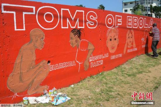 當(dāng)?shù)貢r(shí)間9月8日,在利比里亞,蒙羅維亞街頭,一名叫斯蒂芬·多伊的藝術(shù)家在墻上創(chuàng)作壁畫向人們介紹致命的埃博拉病毒病發(fā)癥狀。世界衛(wèi)生組織8日發(fā)出警告,利比里亞已經(jīng)成為西非受埃博拉疫情肆虐最嚴(yán)重的國(guó)家,該國(guó)因疫情死亡的人數(shù)已經(jīng)占整個(gè)西非發(fā)病死亡人數(shù)的一半以上。
