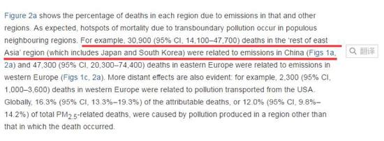 翻譯:東亞其他地區(qū)(包括日本韓國)有3.09萬人的死亡與中國的污染物排放存在關(guān)聯(lián)。(2007年數(shù)據(jù)——環(huán)環(huán)注)