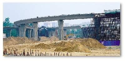 花園路連霍高速互通立交橋遠遠望去已經(jīng)成型