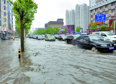 昨天下午3時,記者在東風(fēng)路與文化路交叉口的地下隧道內(nèi)看到,有轎車已被水淹滅了,難以動彈,地下隧道中的積水可沒過輪胎。金水路與東明路交叉口西約100米路南,積水嚴(yán)重,水深幾乎沒過轎車輪胎。豐慶路與三全路交叉口附近的豐慶路小學(xué)門前也是宛如“海洋”,積水沒過自行車大半個車輪。放學(xué)的部分小學(xué)生無法通行,被人背著過路。巡防隊員解釋稱,此處地勢低洼,排水不暢,逢雨必淹,孩子們雨天上下學(xué)很不安全。