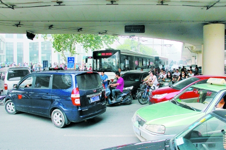 記者注意到,鄭大一附院的地下停車場入口設(shè)置在河醫(yī)立交橋的東南角,而看病車輛駛?cè)脶t(yī)院必須占用非機動車道,等候進入醫(yī)院的車輛很容易擁堵。
