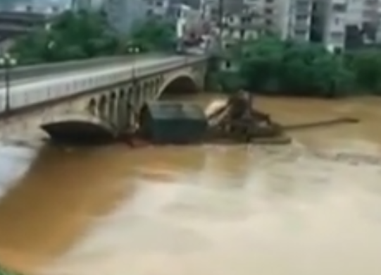 • 實(shí)拍砂船遭洪水沖擊撞上大橋