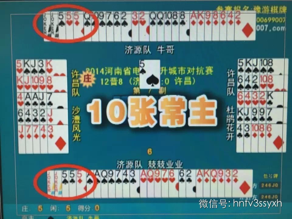 今天進(jìn)行的是2014河南省電視雙升城市對(duì)抗賽12晉8第6組的第1場(chǎng)比賽,由許昌隊(duì)的老牌手“沙澧風(fēng)光”和“杜鵑花開”對(duì)決濟(jì)源隊(duì)的“牛哥”和“兢兢業(yè)業(yè)”,雙方都想在第一場(chǎng)比賽上贏得對(duì)方,所以打的是格外激烈,究竟結(jié)果如何,請(qǐng)鎖定今晚21:40《雙升英雄會(huì)》,與您不見不散!