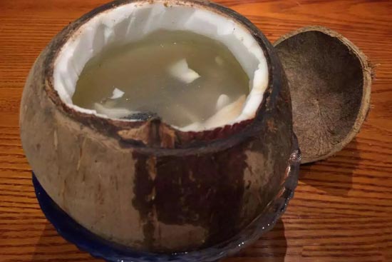 4、海椰皇用搗碎器敲去外殼,將椰內(nèi)洗凈對切成兩半。