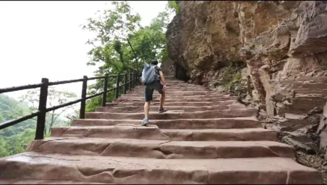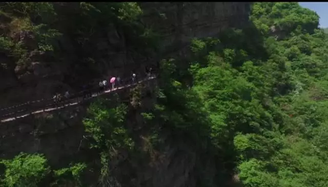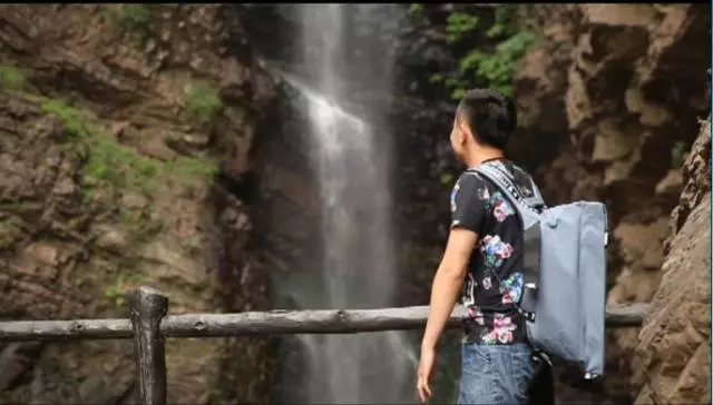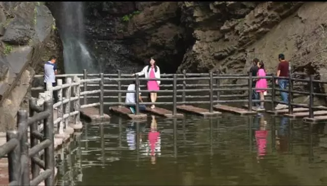 瀑布高達100余米,從井口水簾洞落下,形成了自然奇觀,漫步在棧道之上,便有穿云破霧之感。在這里,遠望可領略高山整體氣勢之壯美,近觀可品察,山石樹木形色質紋之奇秀。