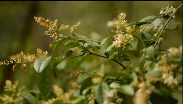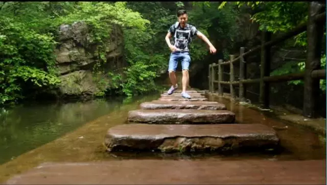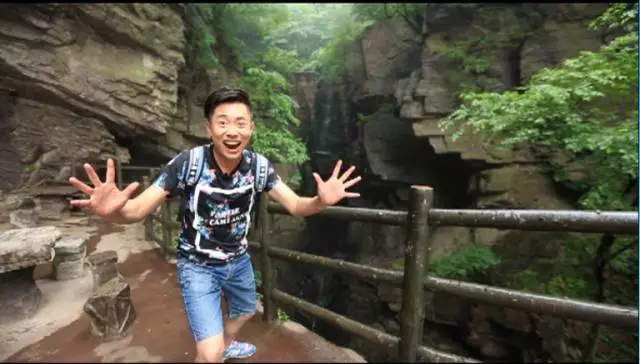 看到這棵樹了沒有,據說這個葉子有個奇特的味道,是一股橘子味,在這山上還有很多珍貴野生的樹種,漫山遍野一股清香襲來,再往前走就可以看到天井了,天井四面峭壁,犬牙交錯高深莫測。
