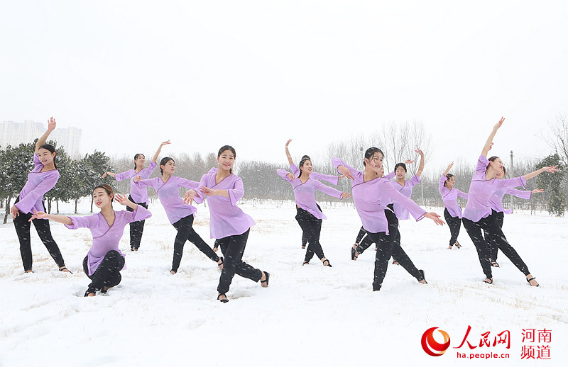 雪中起舞展芳華 河南200名女大學生凌寒怒放