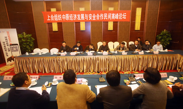 12月13日上午,北京河南大廈四層中原廳內(nèi)高朋滿座,思想碰撞,創(chuàng)意迭出。由河南省新聞出版廣電局、北京河南大廈主辦,大象融媒·大象智庫、大象融媒·猛犸新聞 、香港天溯智庫承辦的“上合組織和中原經(jīng)濟(jì)發(fā)展安全與合作2015民間高峰論壇”在這里成功舉辦。中國上海合作組織國家研究會中心高級顧問王海運(yùn)少將等一批國際區(qū)域經(jīng)濟(jì)、安全合作領(lǐng)域的國家級研究專家和有影響力的實戰(zhàn)派“大咖”圍繞“國際新格局下上合組織的新使命”、“一帶一路戰(zhàn)略的安全保障”、“一帶一路戰(zhàn)略中的中原企業(yè)與地方政府優(yōu)劣勢”、“ 中原企業(yè)在上合組織成員國的商機(jī)與風(fēng)險”等話題展開高端座談。